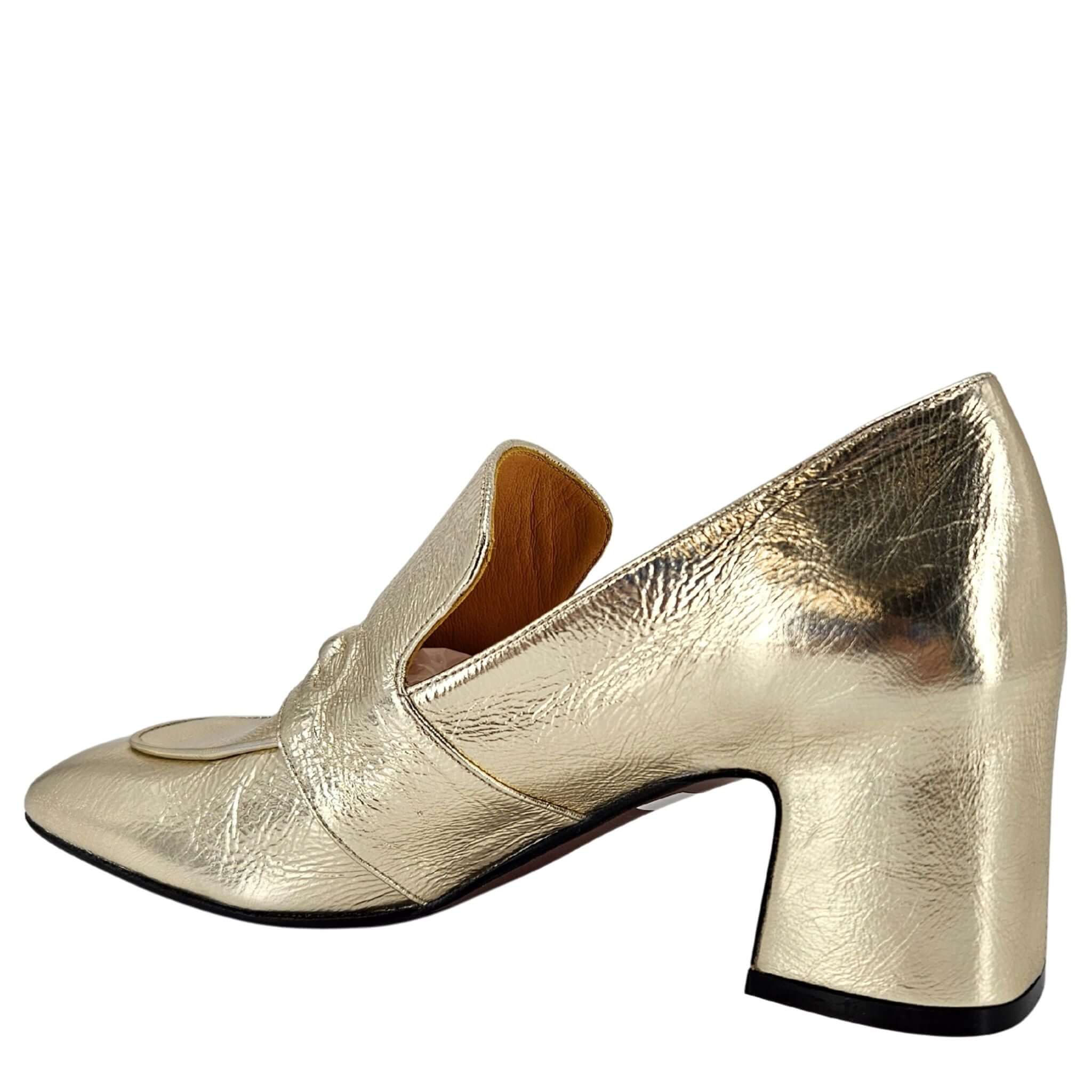 Gold Leather Hidden Bit Heel Loafer