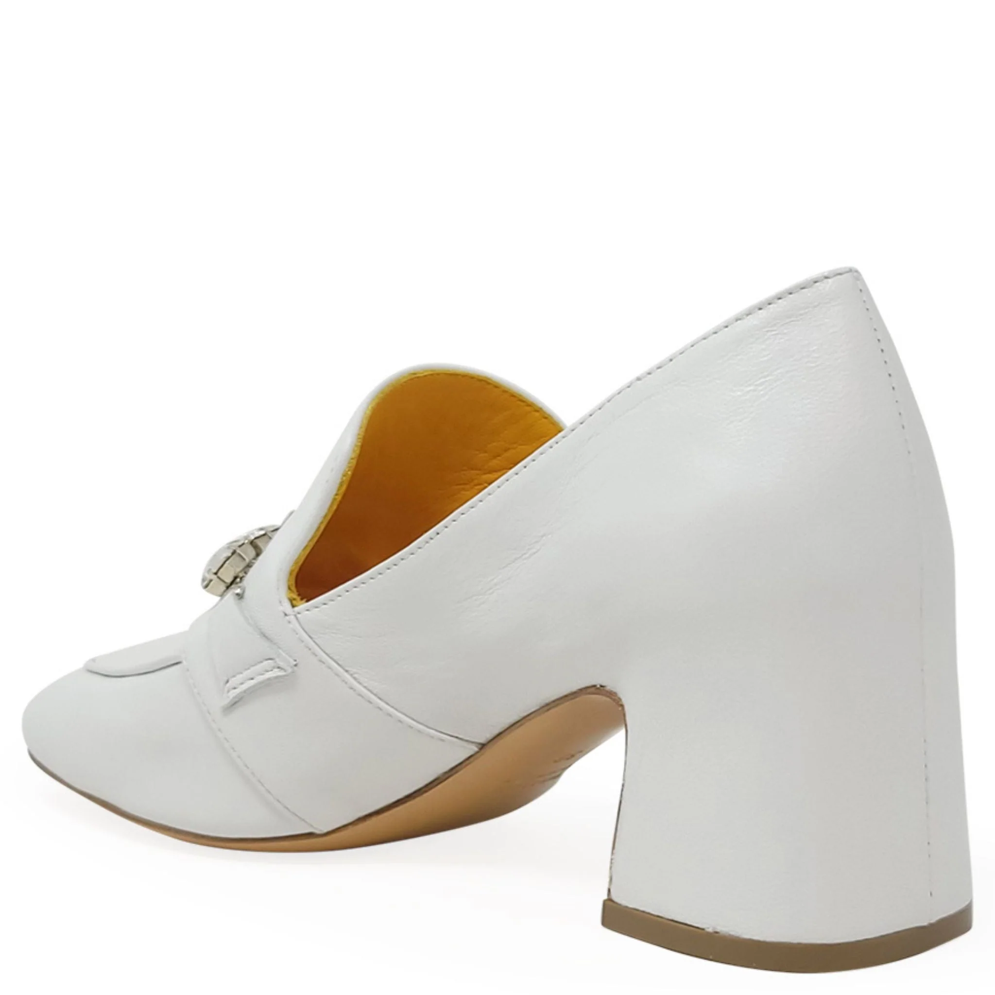 Discover timeless elegance with this leather mid-heel loafer, showcasing a graceful 55mm (approximately 2.2 inches) heel that delivers both comfort and sophistication. Intricate jeweled detailing elevates the design, while premium leather construction guarantees lasting quality and a refined aesthetic. Perfect for professional environments or upscale casual occasions, this versatile loafer seamlessly transitions from day to evening wear with understated luxury.