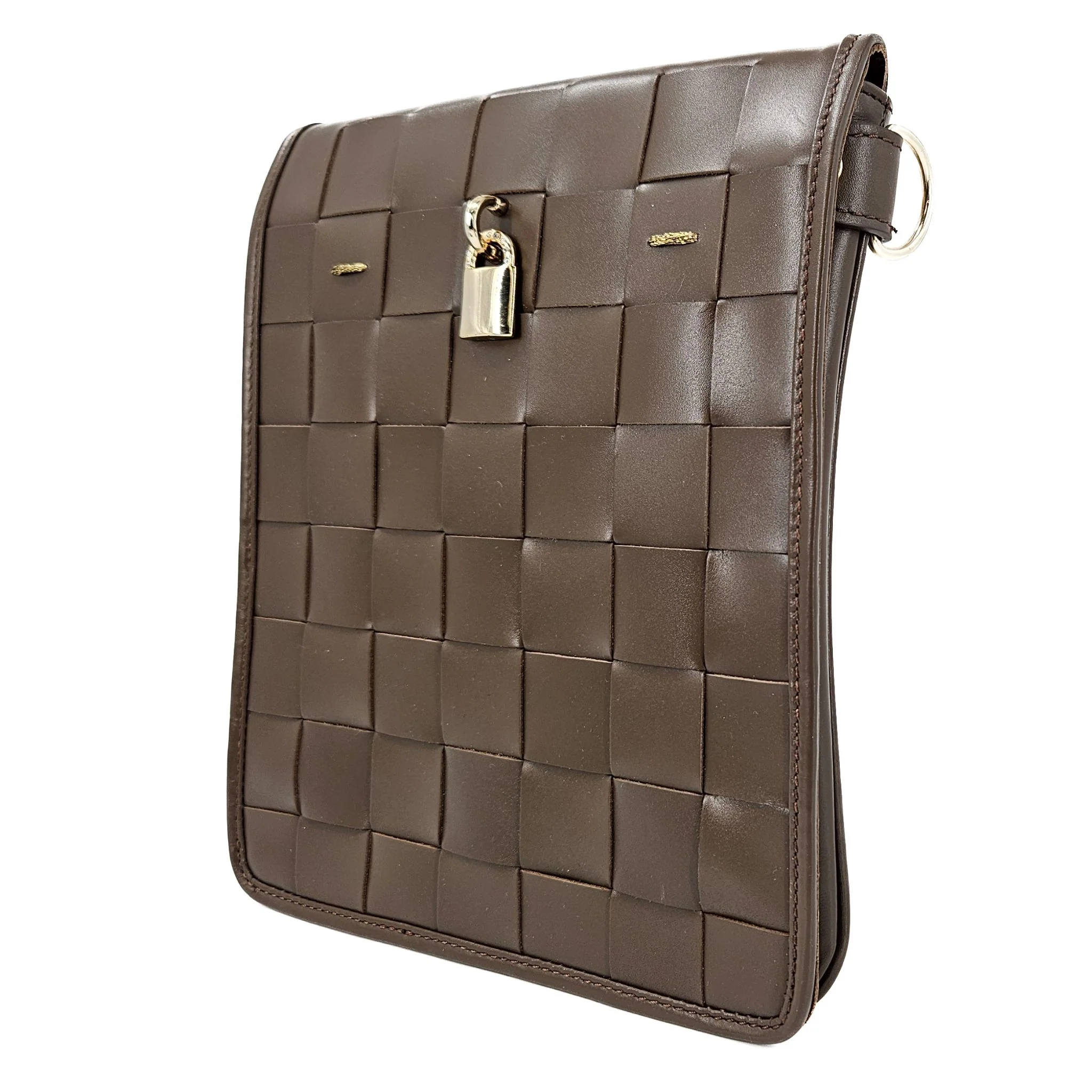 Woven Leather Chocolate Crossbody Bag